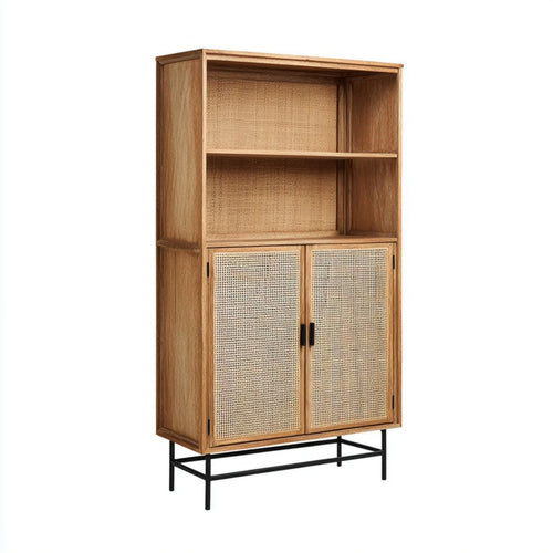 Table basse ovale en verre et rotin avec étagère inférieure -
