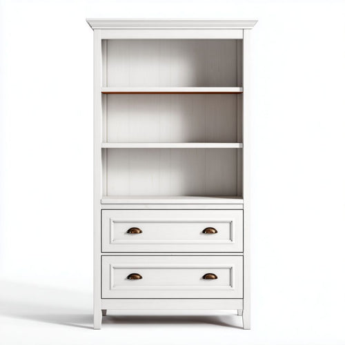 Vitrine en bois blanc avec portes vitrées et tiroir de rangement -